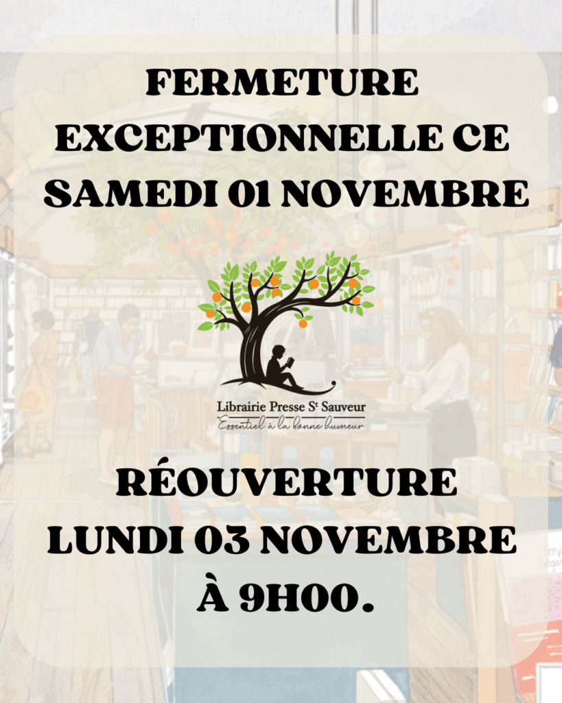 Exceptionnellement, nous allons fermer la librairie ce samedi 1er novembre.